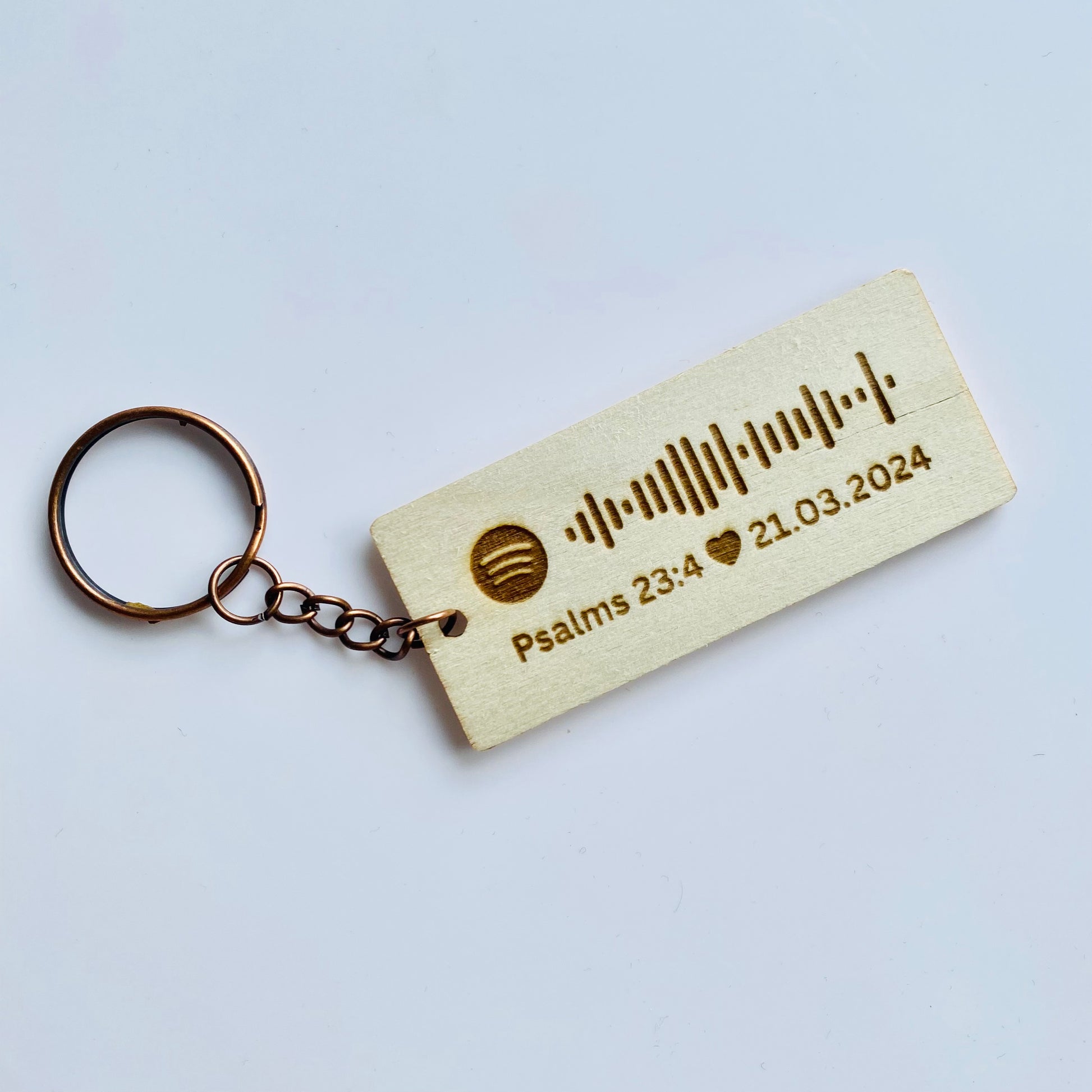 A sentimental gift for your loved one, a keyring with your choice of text, engraved with a Spotify code to your choice of special song. Beautiful for your wedding song or song with your partner, or a sentimental song between you and a loved one or someone who is no longer with us.